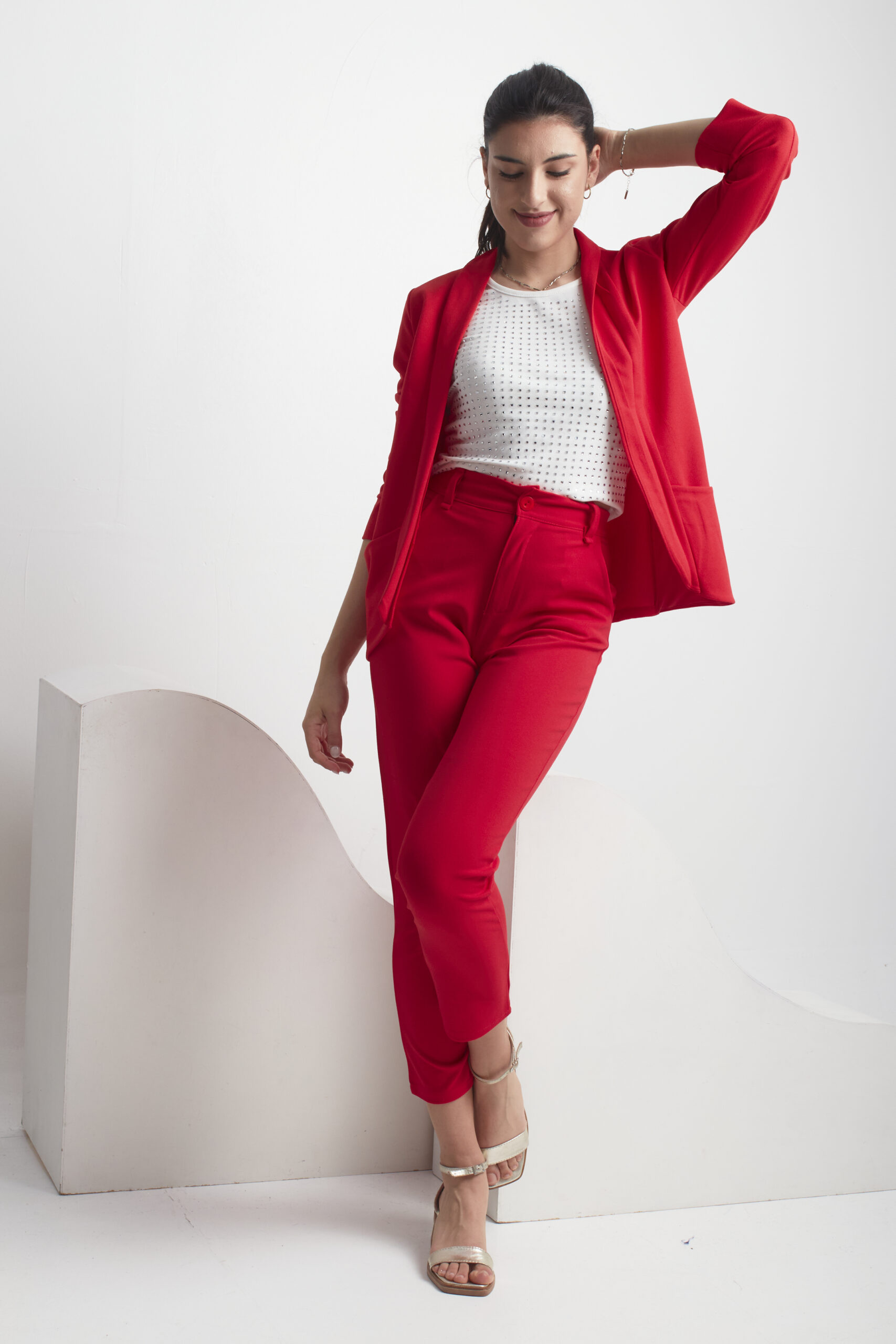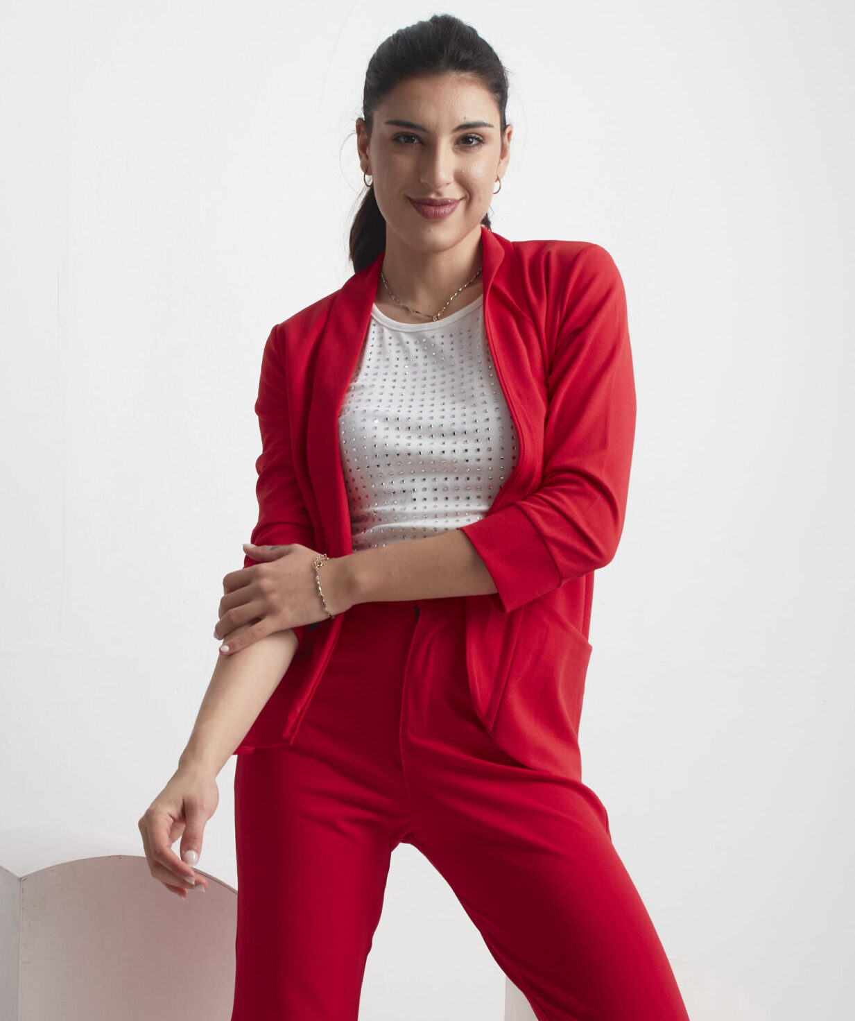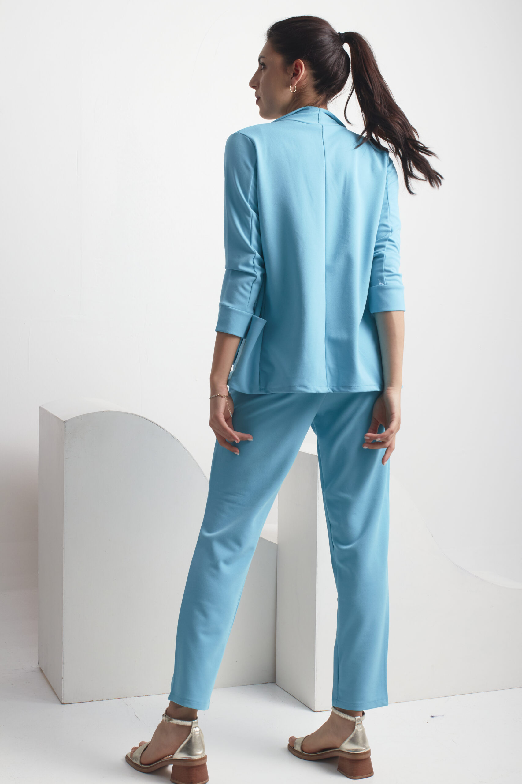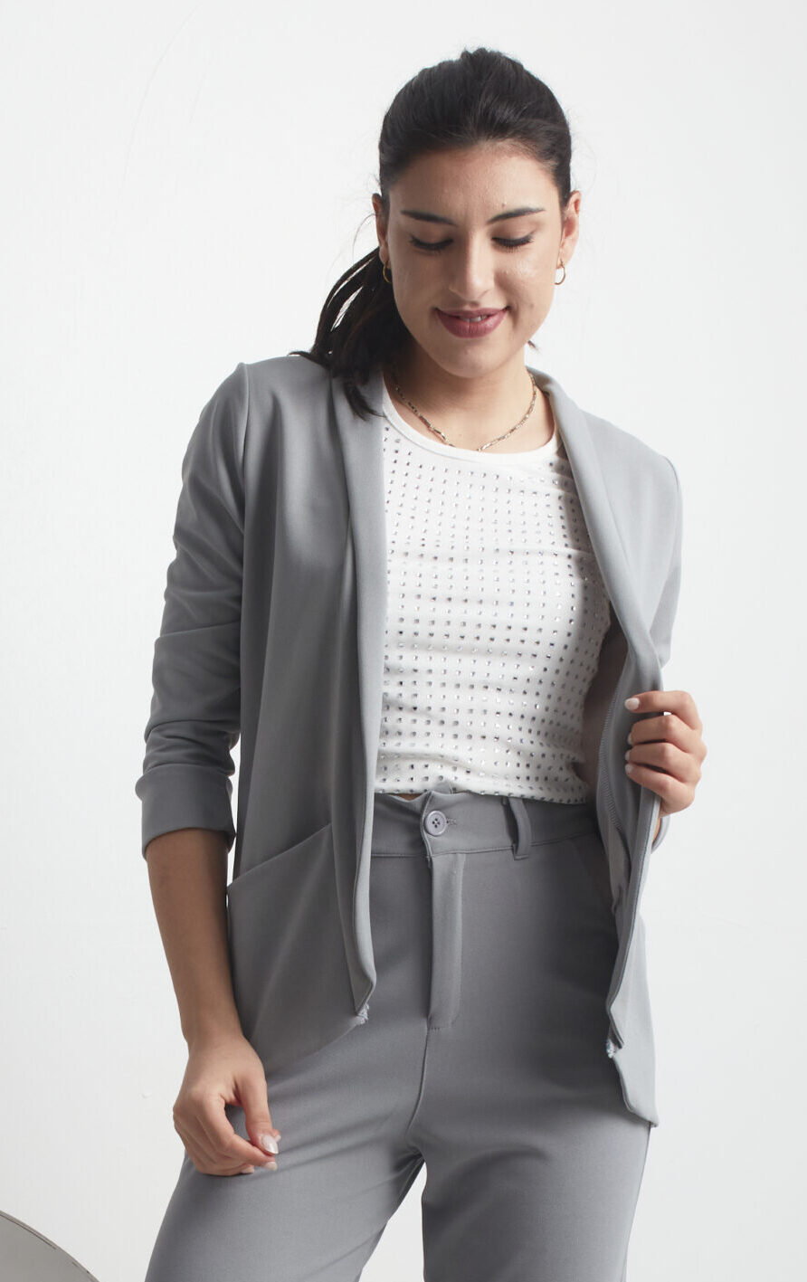 BLAZER DE CREP CUBA, CON LA MANGA 3/4 Y CUENTA CON BOLSILLOS AMPLIOS A LOS COSTADOS. ES UN MODELO QUE SE USA ABIERTO EN LA PARTE DE ADELANTE.