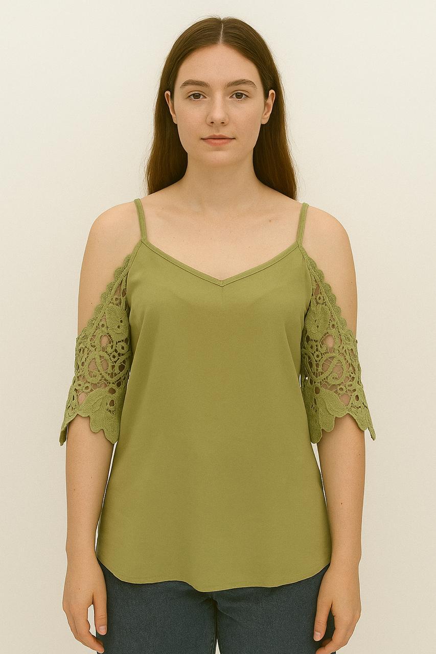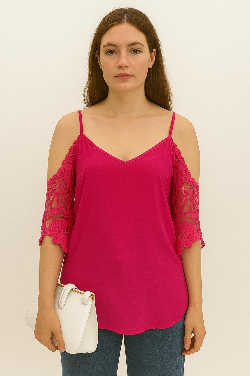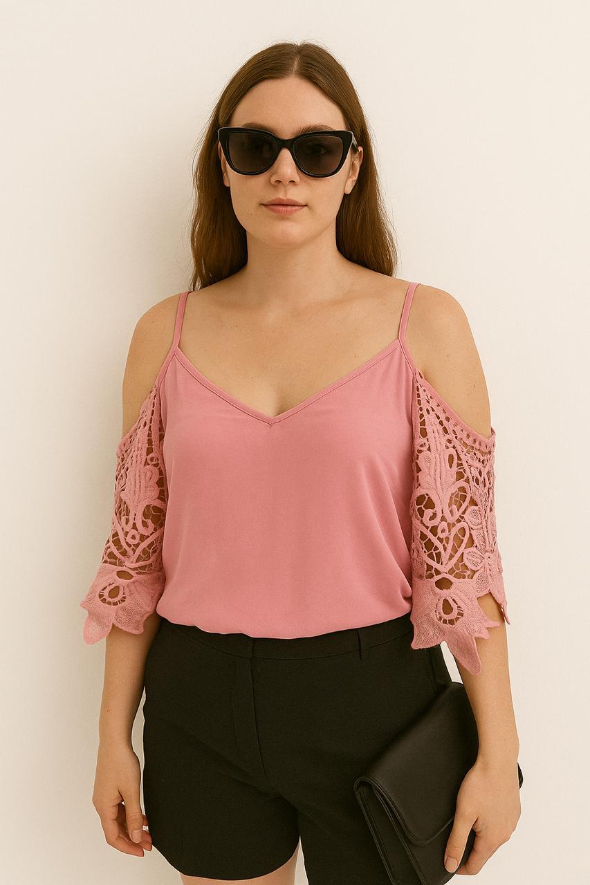 blusa importada con encaje en la mangas y reguladores en ambos lados