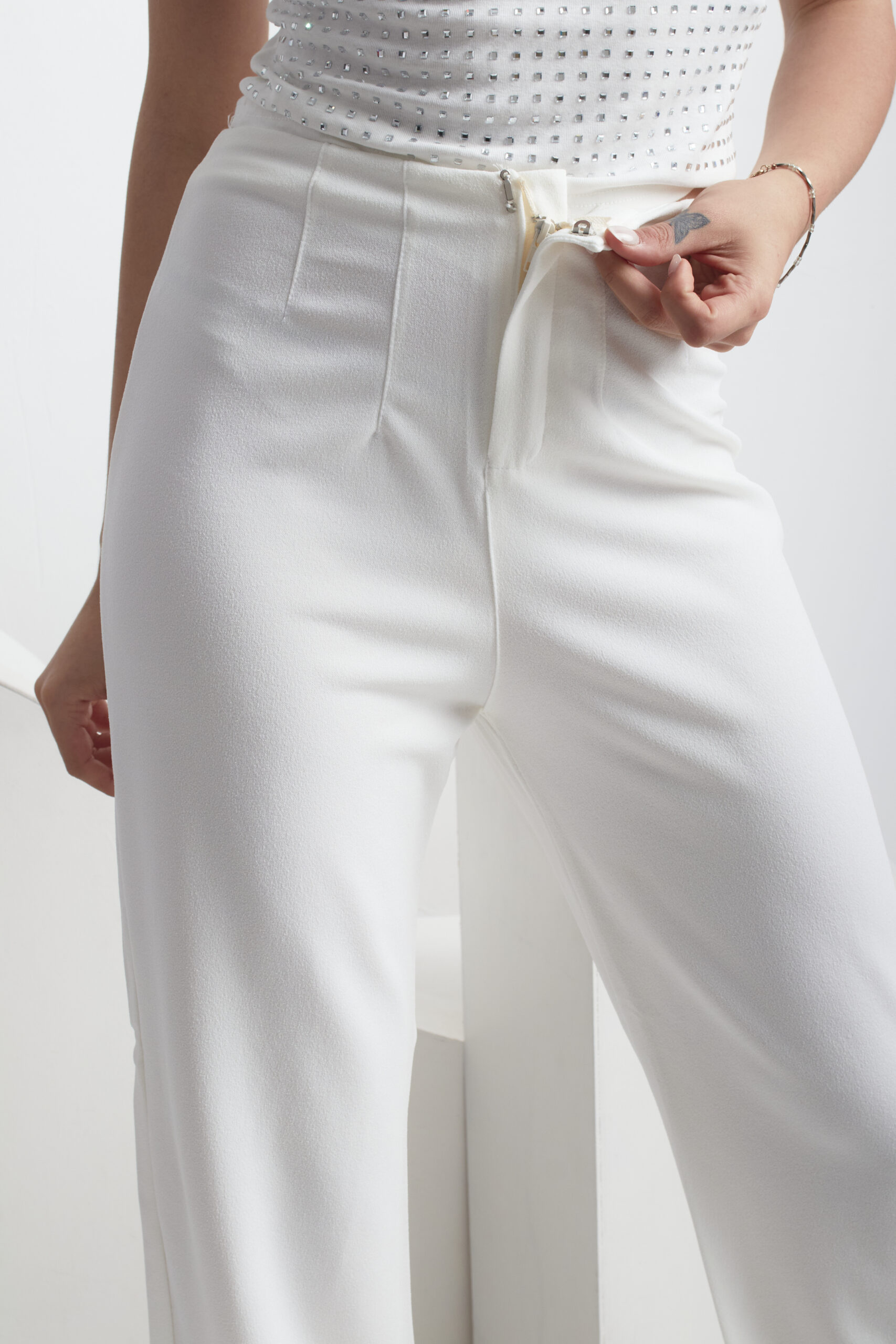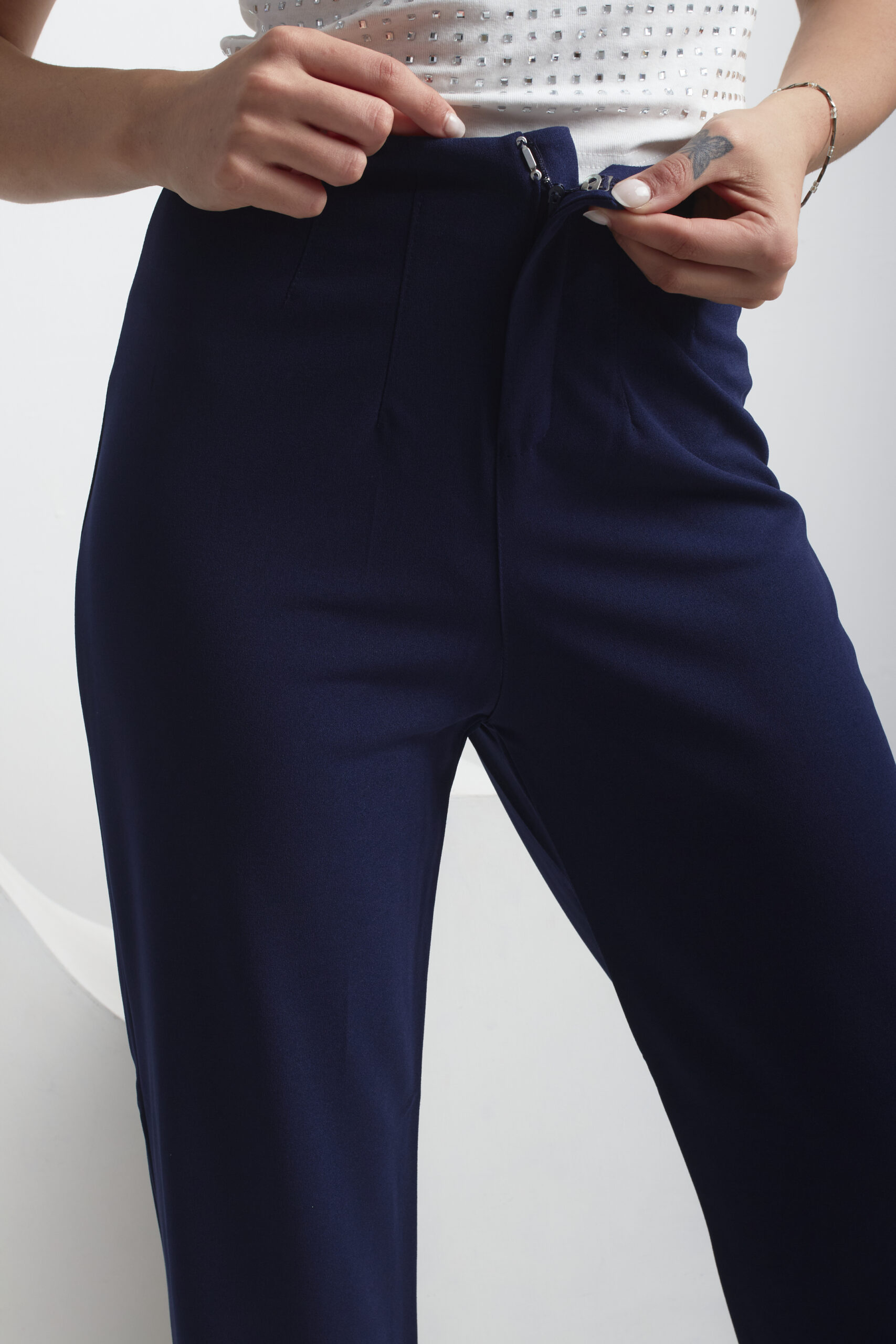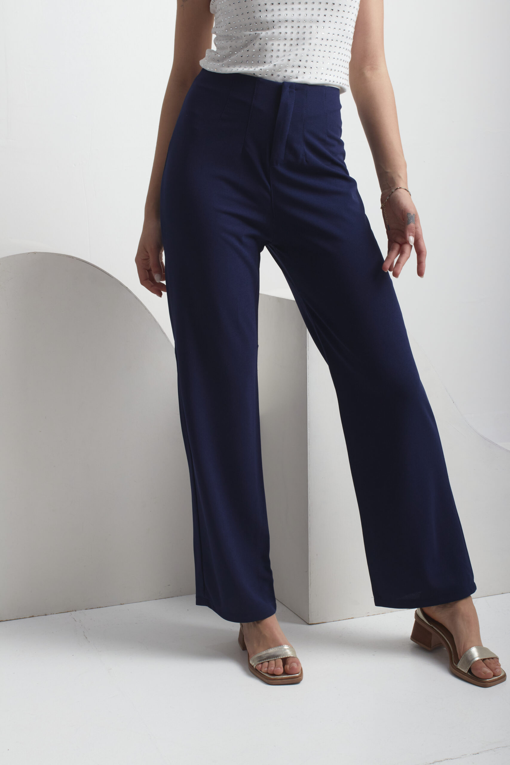 PANTALÓN DE CREP CUBA ELASTIZADO CON UN CORTE RECTO Y VIENE CON CINTURA AVISPA.