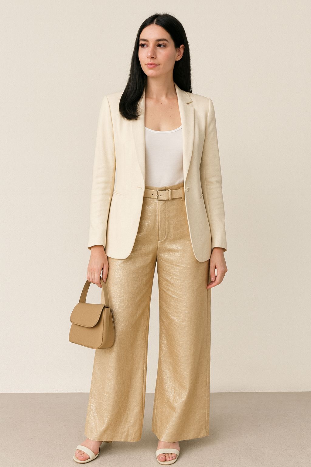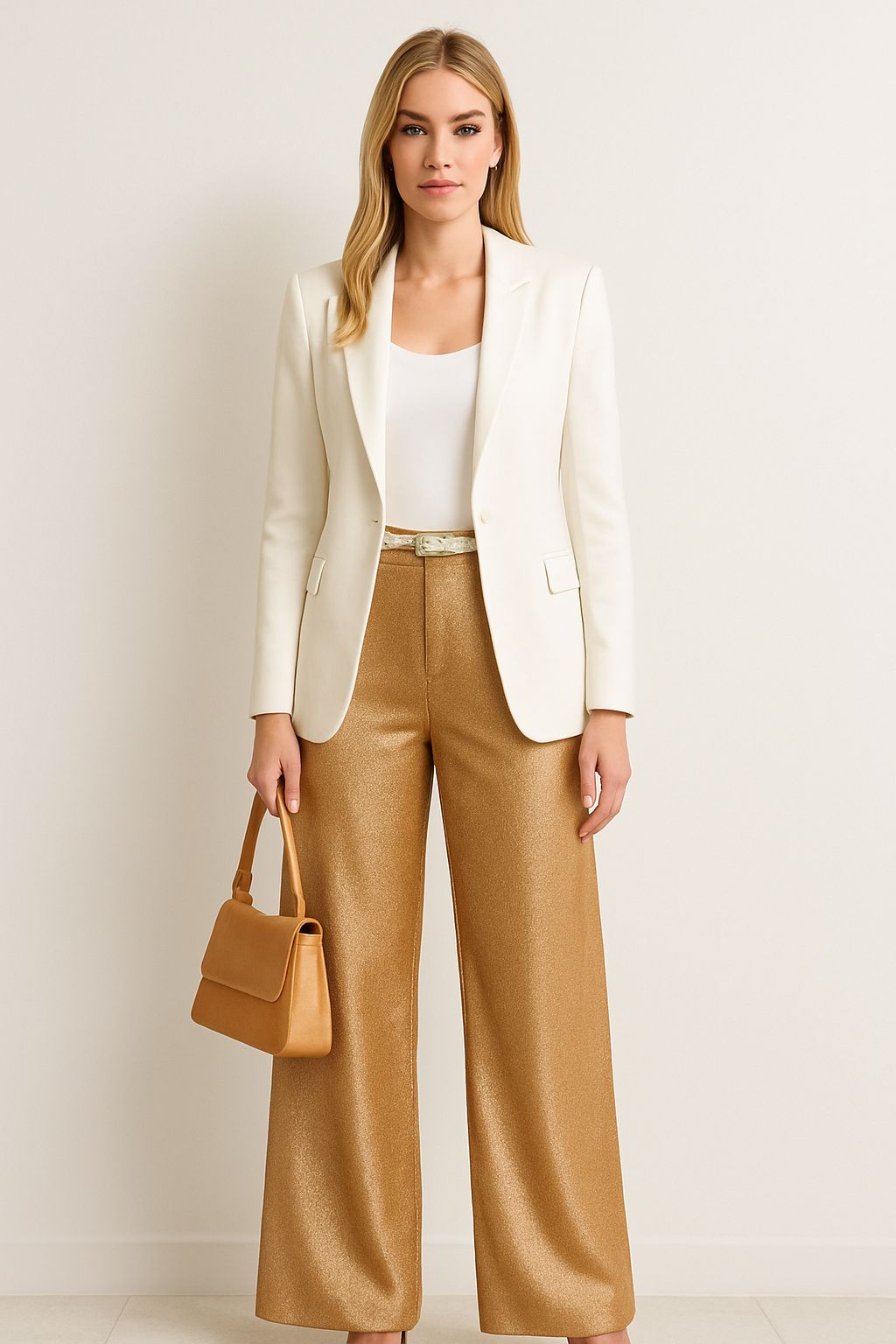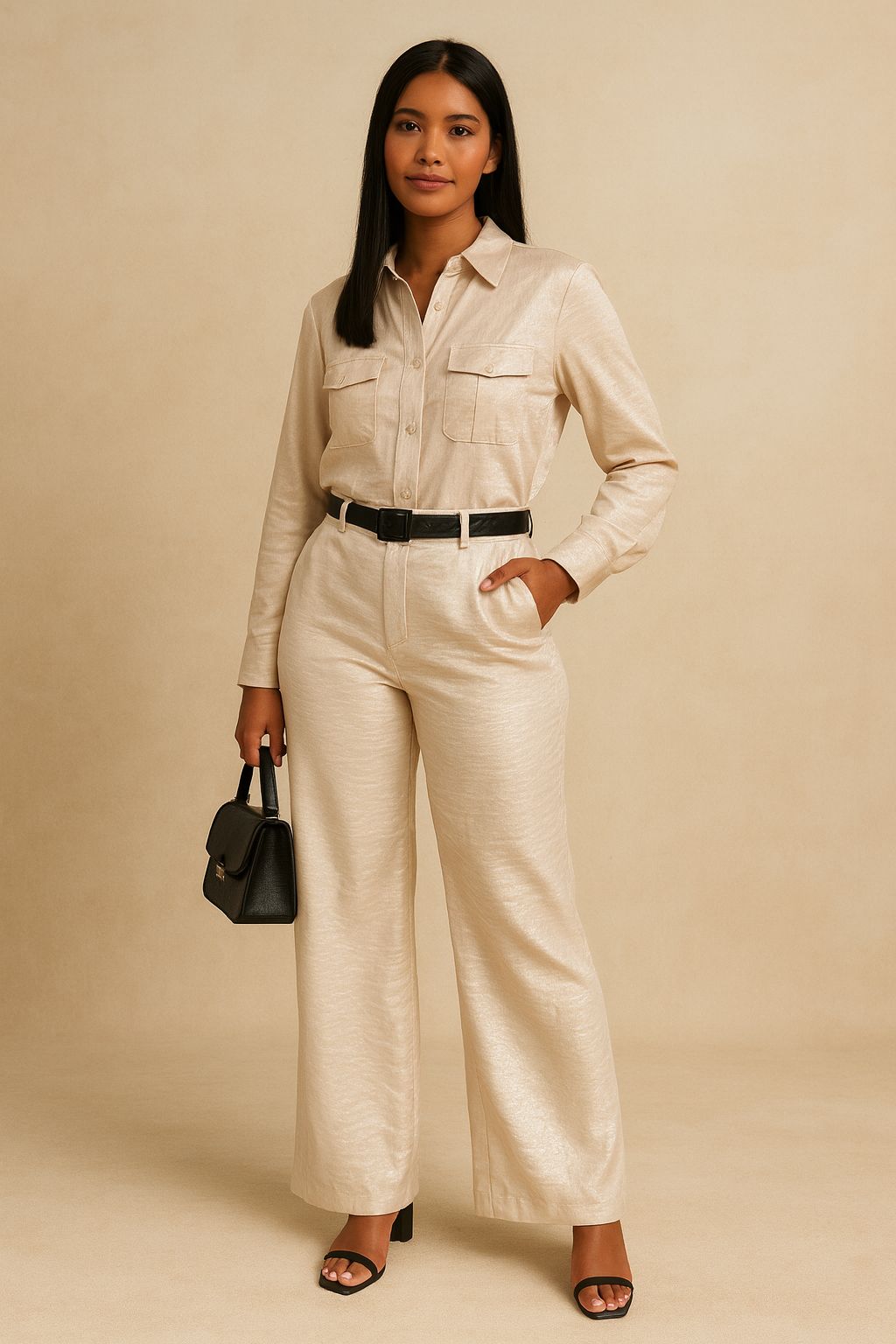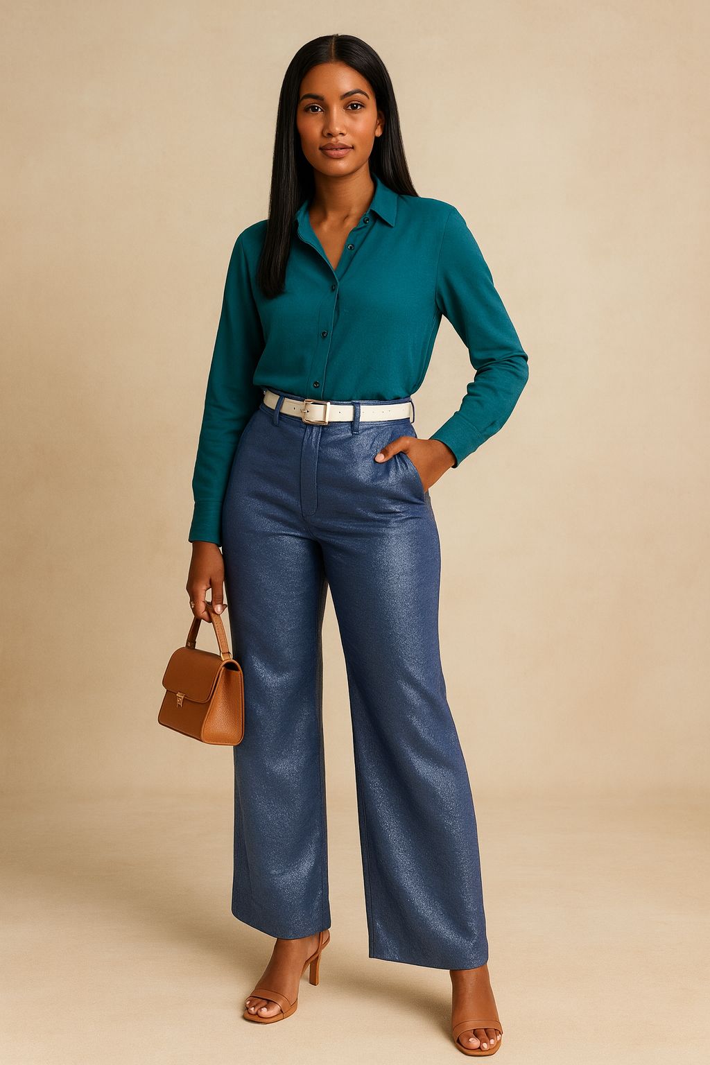 es modelo de palazo viene del S al XXL, esta hecho de una tela fresca que simula ser metalizada