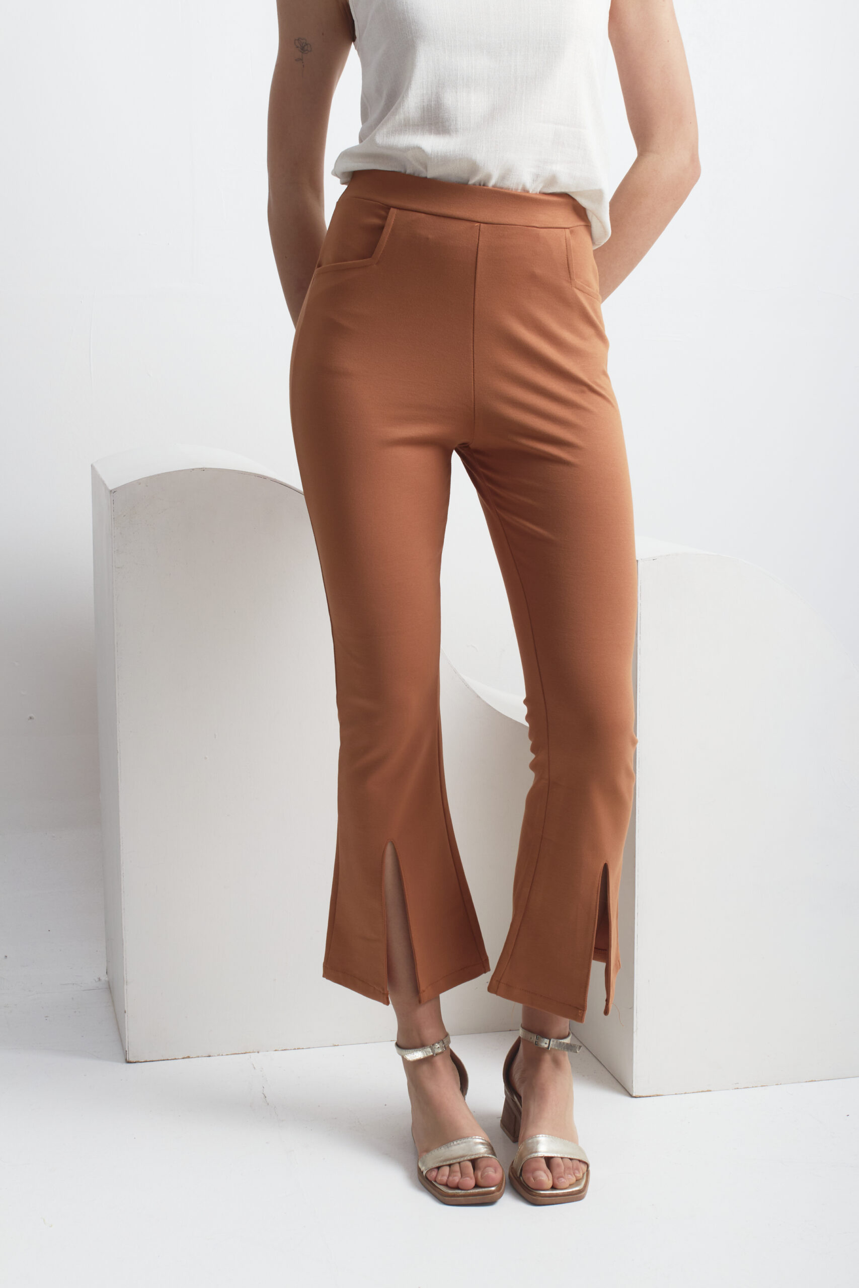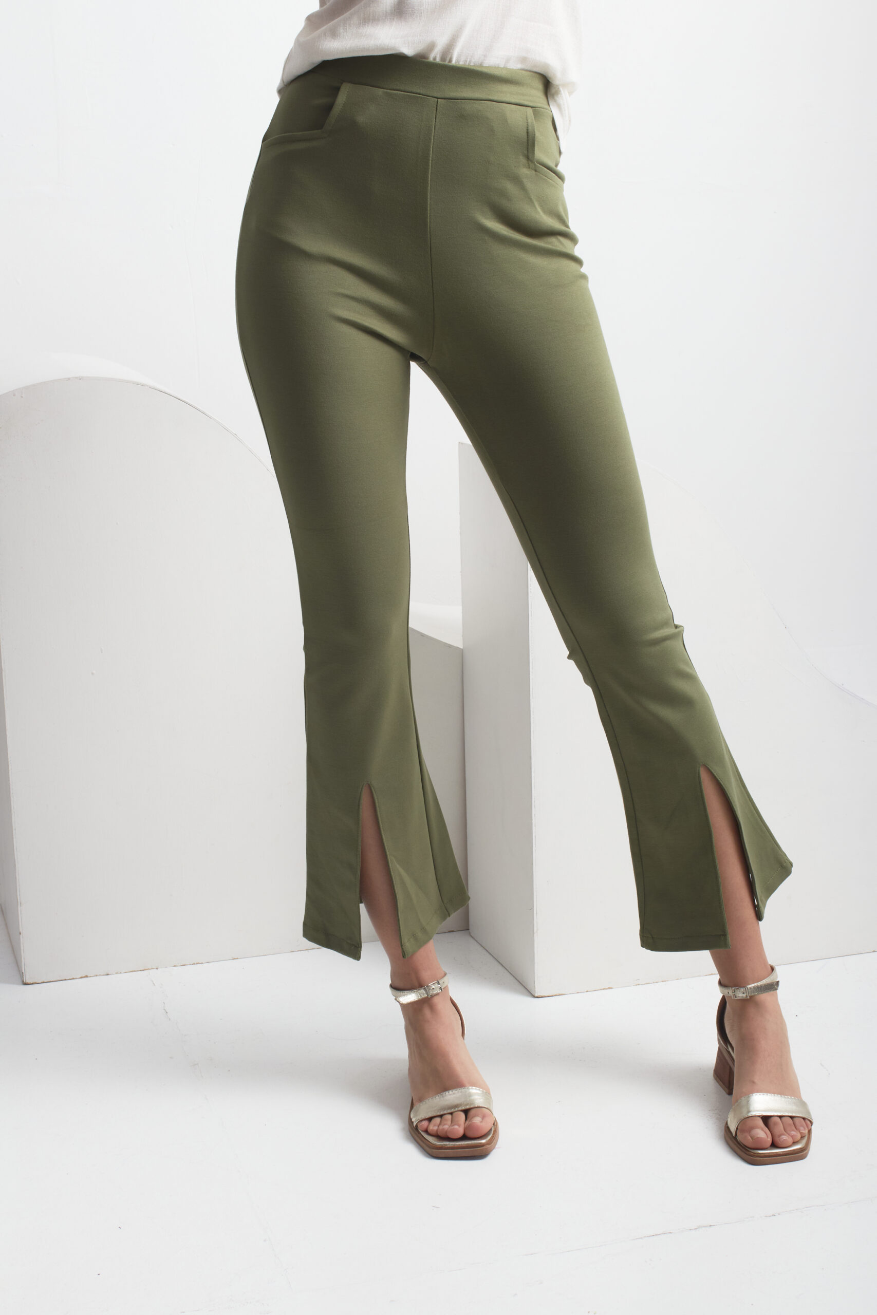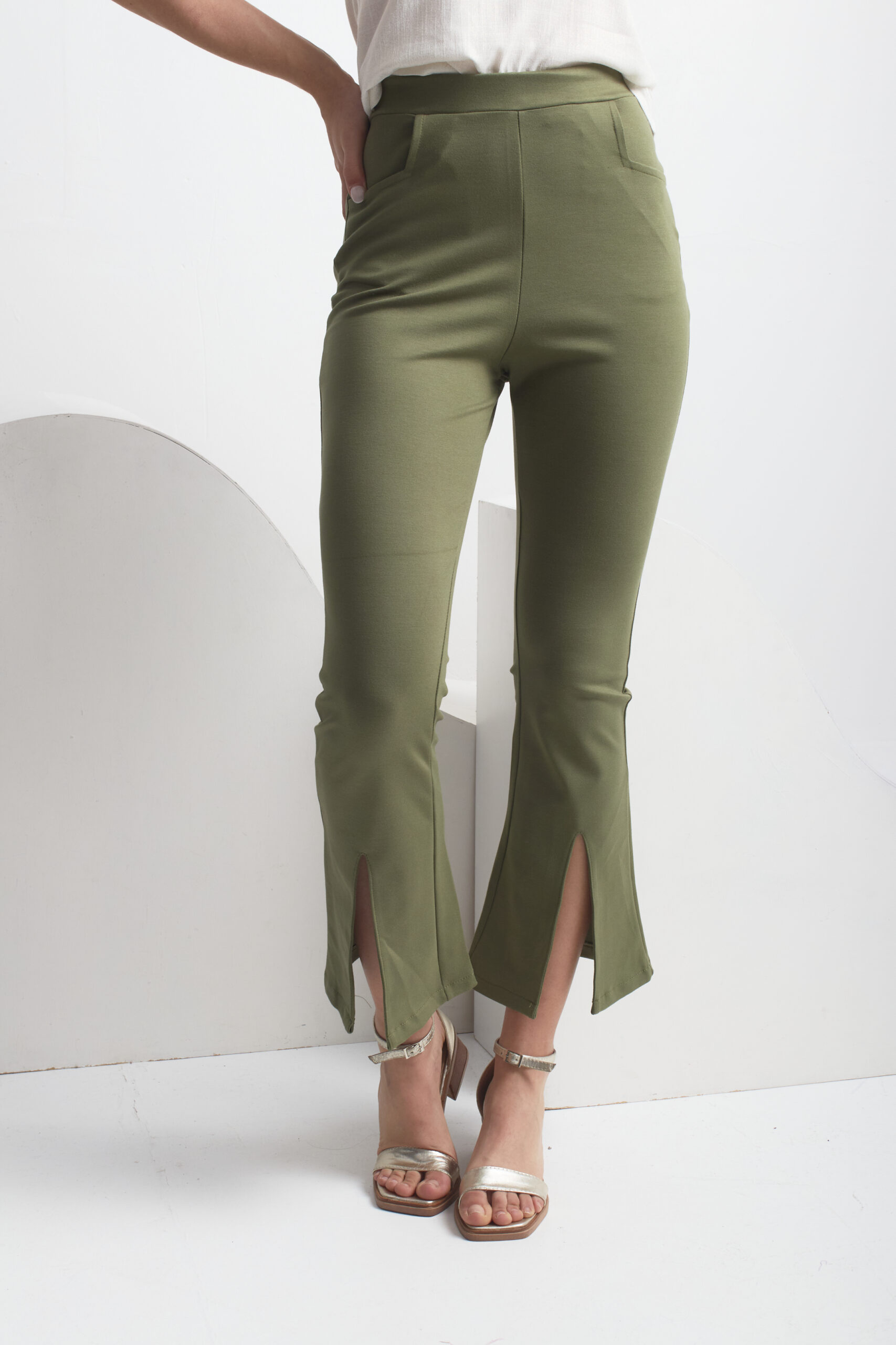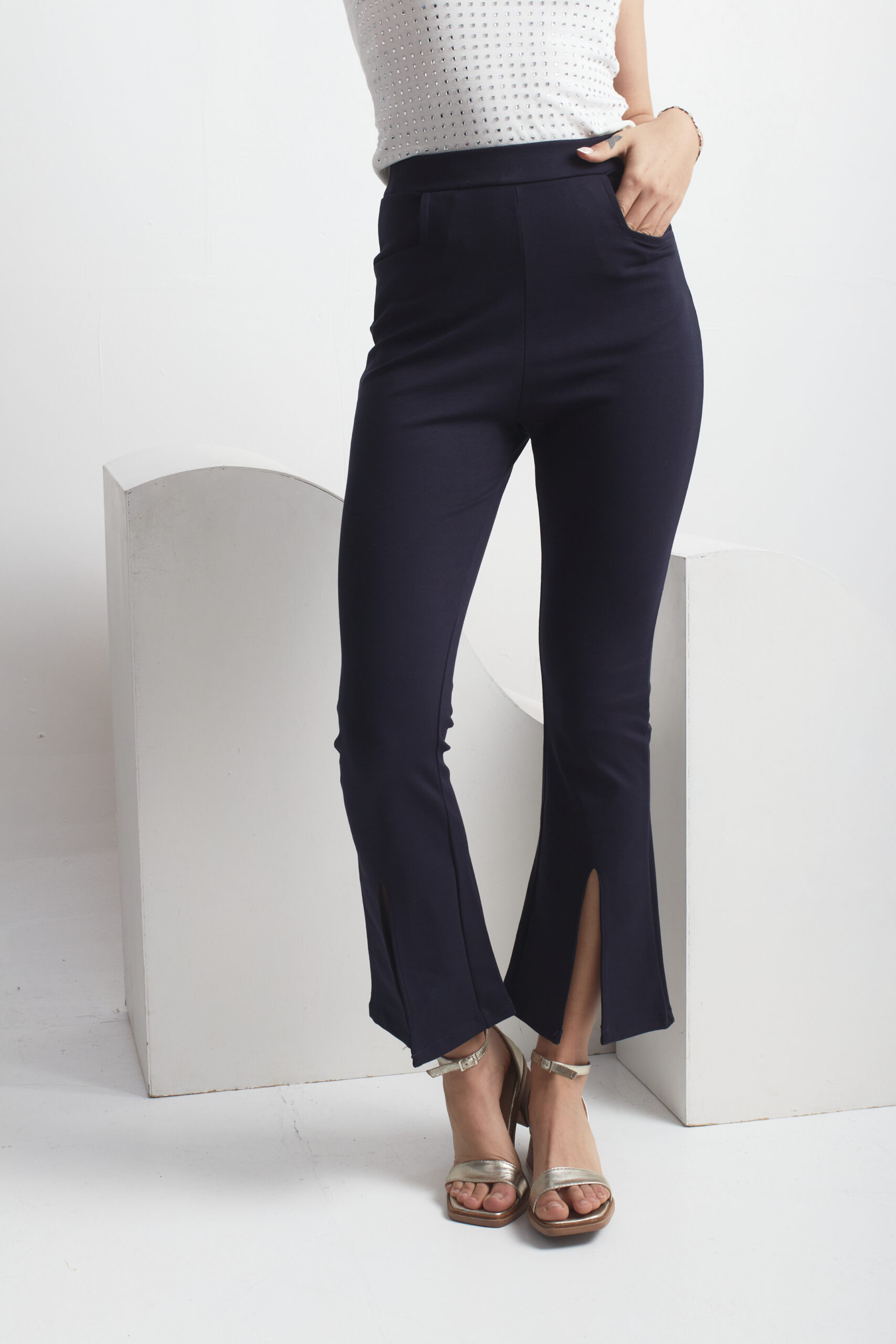 Pantalon de punto roma, vienen con elastico en la cintura y cuenta con los tajos en la parte de adelante
