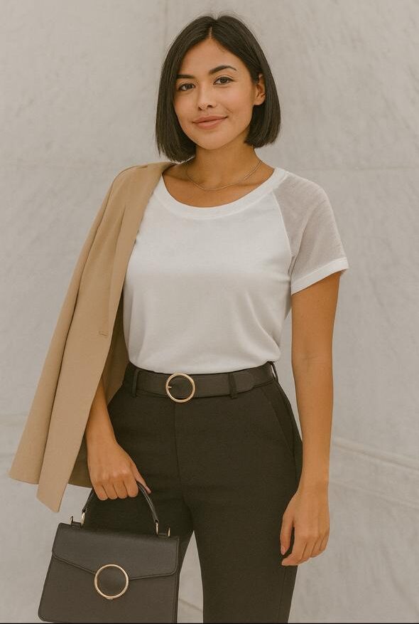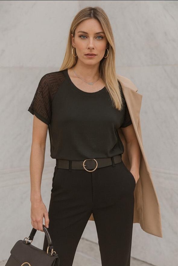 remera de modal con cuello redondo y su maga de encaje transparente