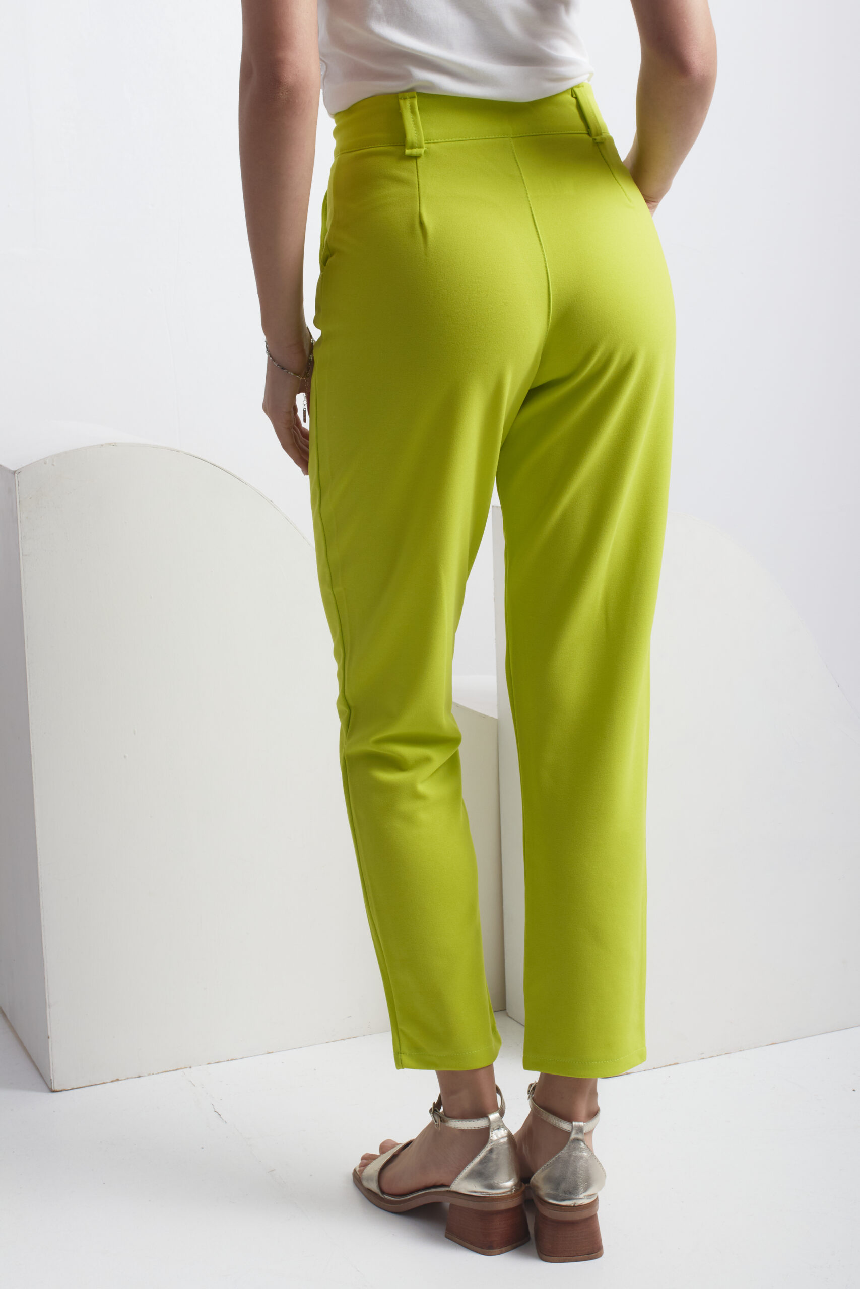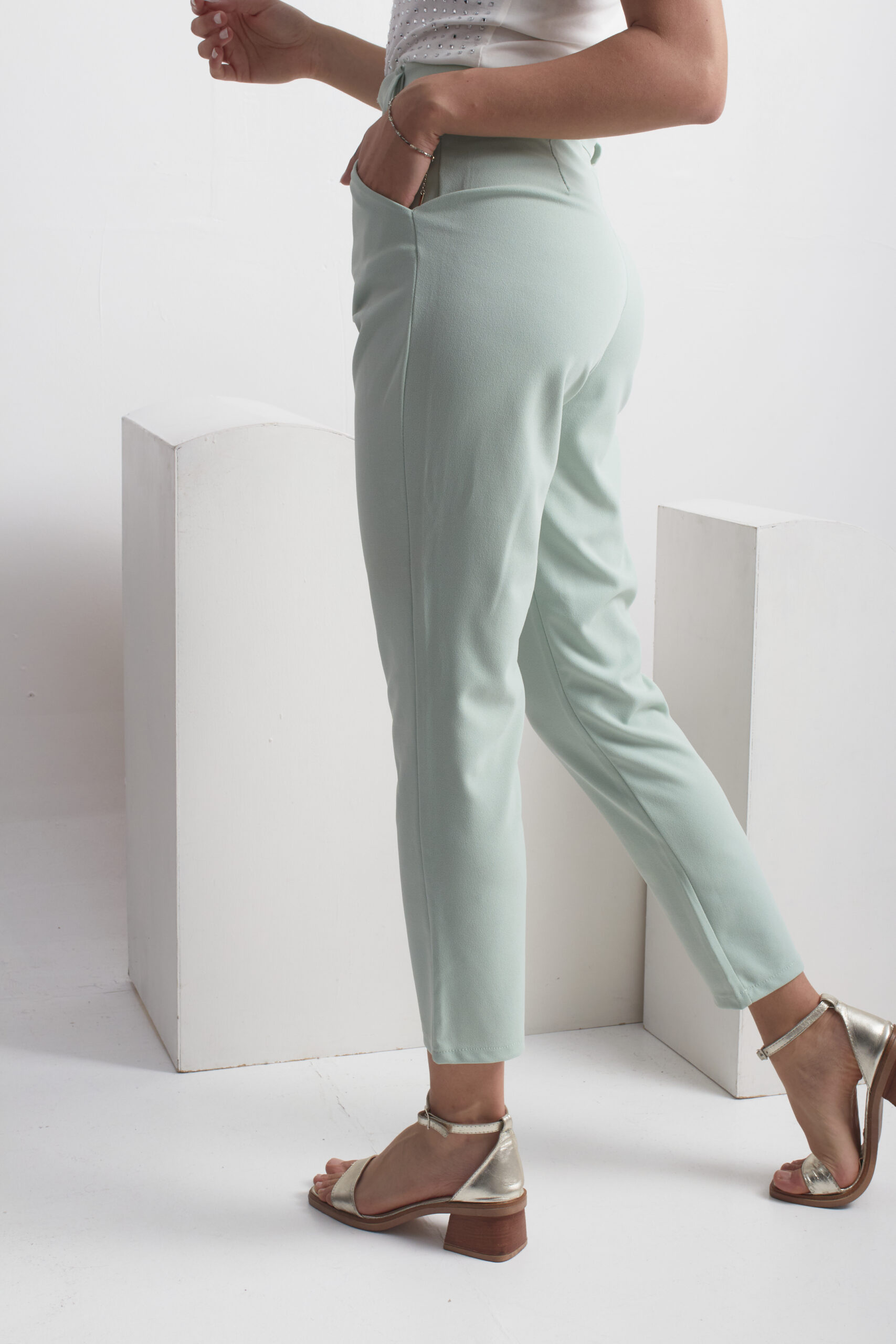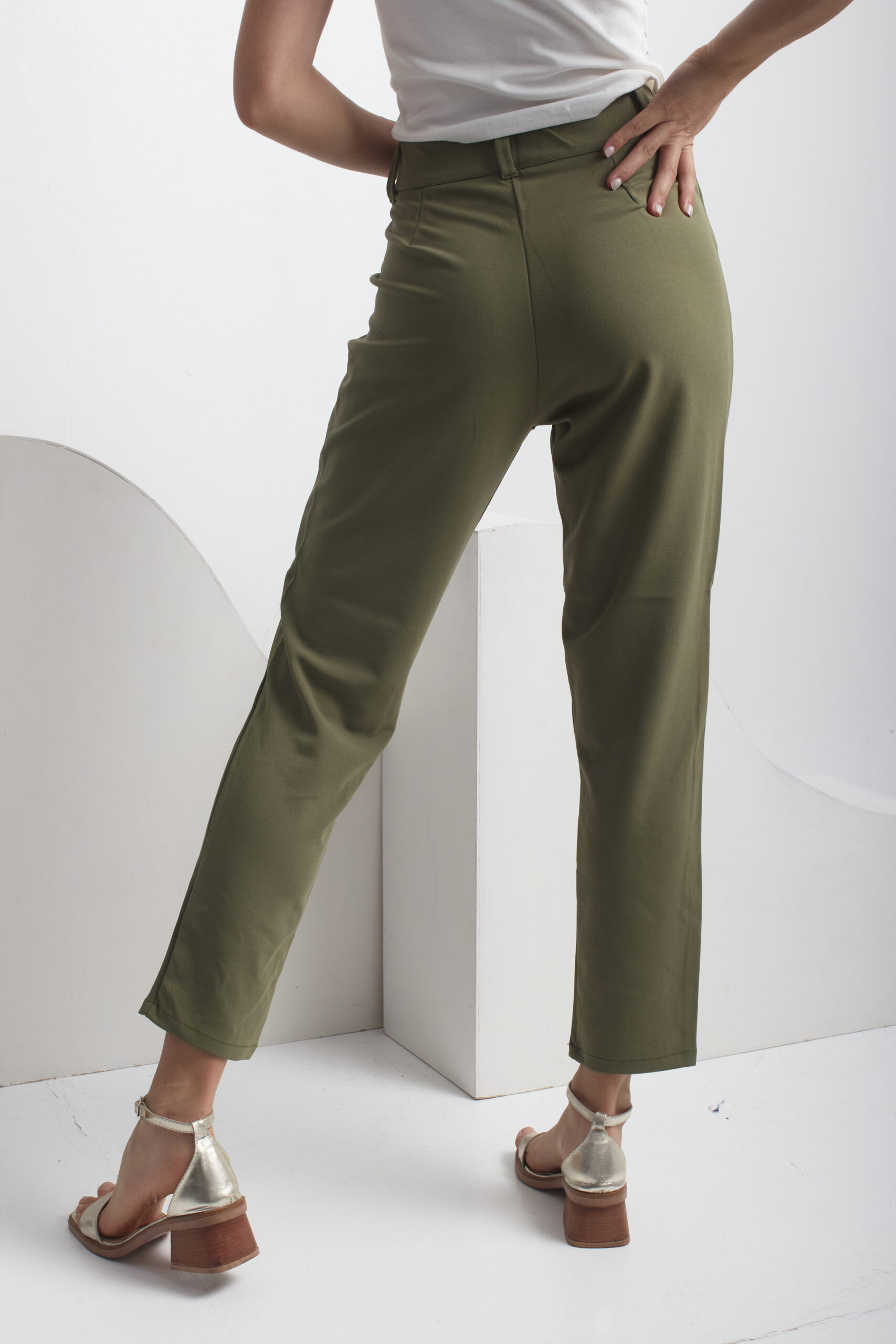 PANTALÓN SASTRERO DE CREP CUBA ELASTIZADO, CON CORTE CHUPÍN, VIENE CON PINZAS EN LA PARTE DE ATRÁS.