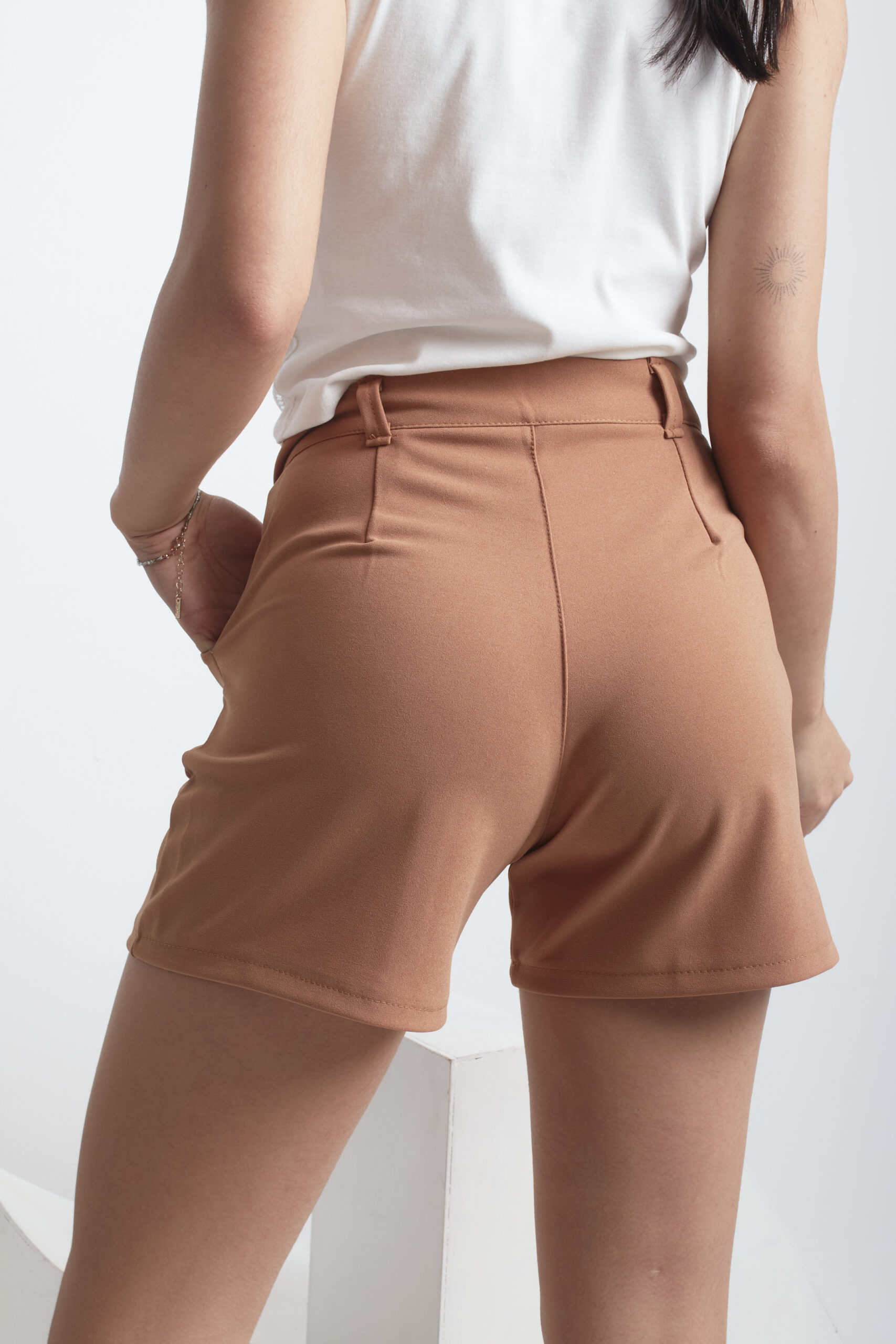 Short de creo cuba es un modelo tiro alto, viene con la linea en el medio.