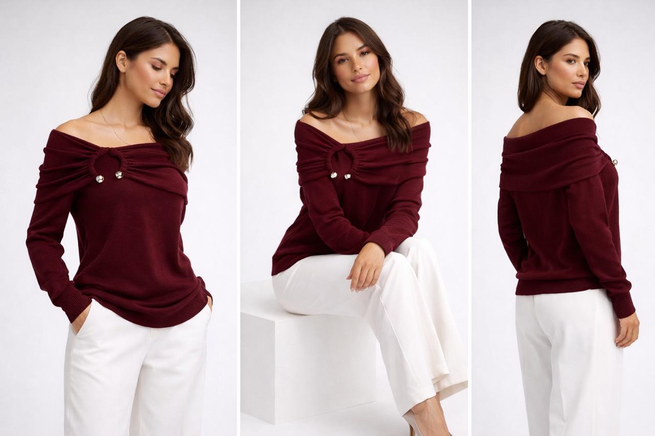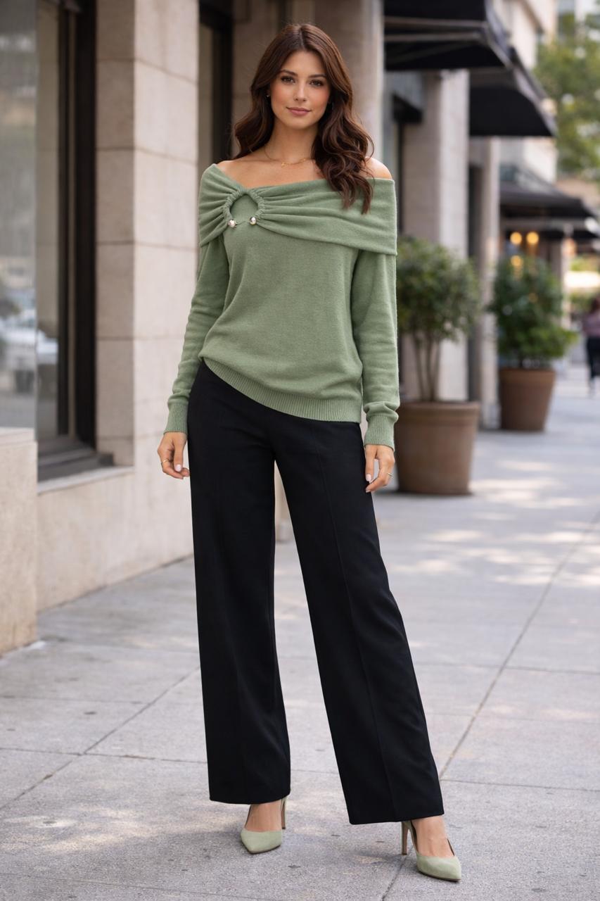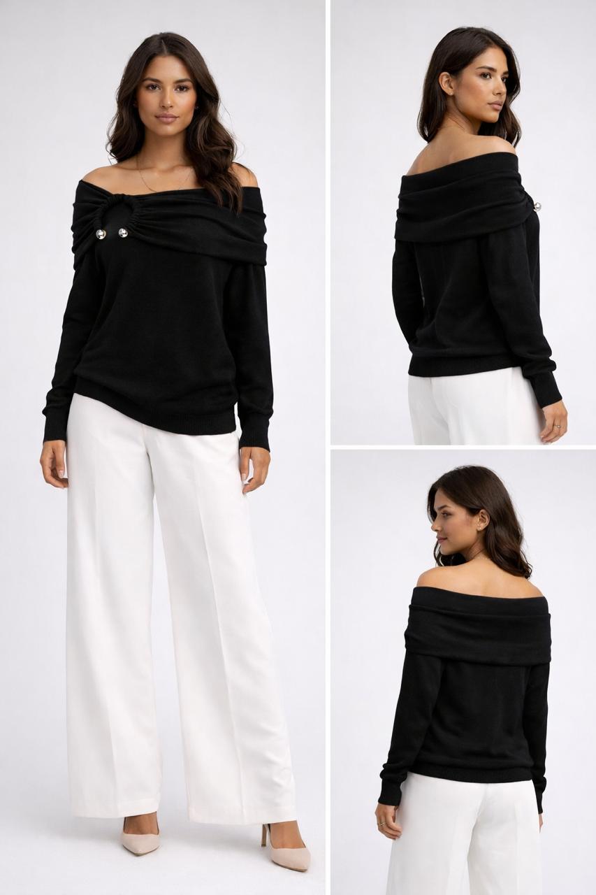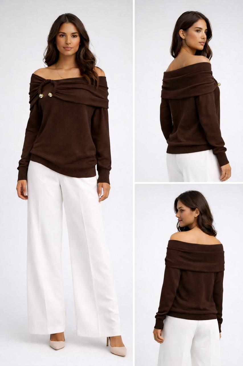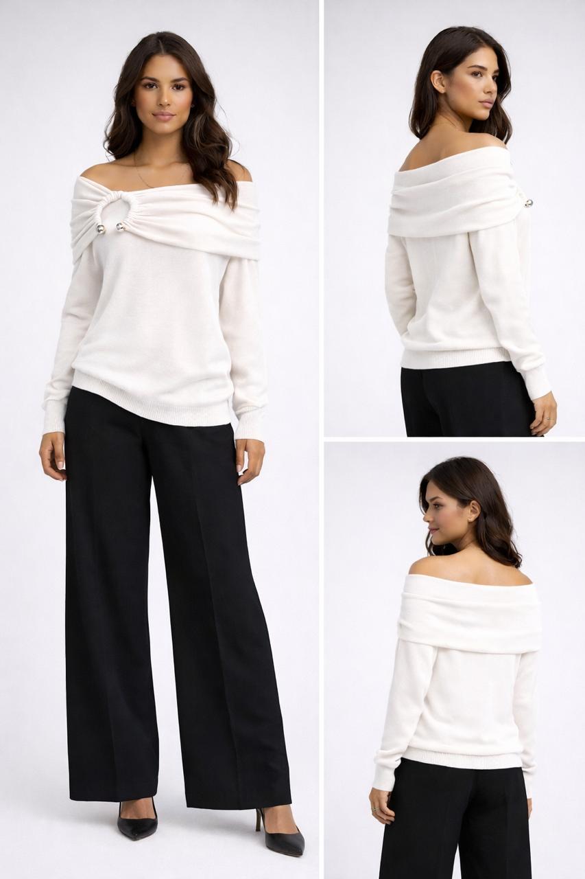 Sweter importado, tipo bote con el hermoso detalle del aro, talle unico pero talle real que abarca hast un 4.