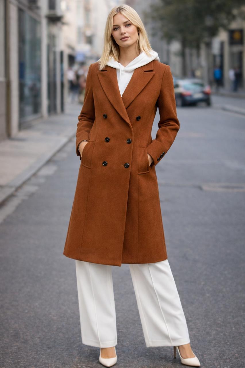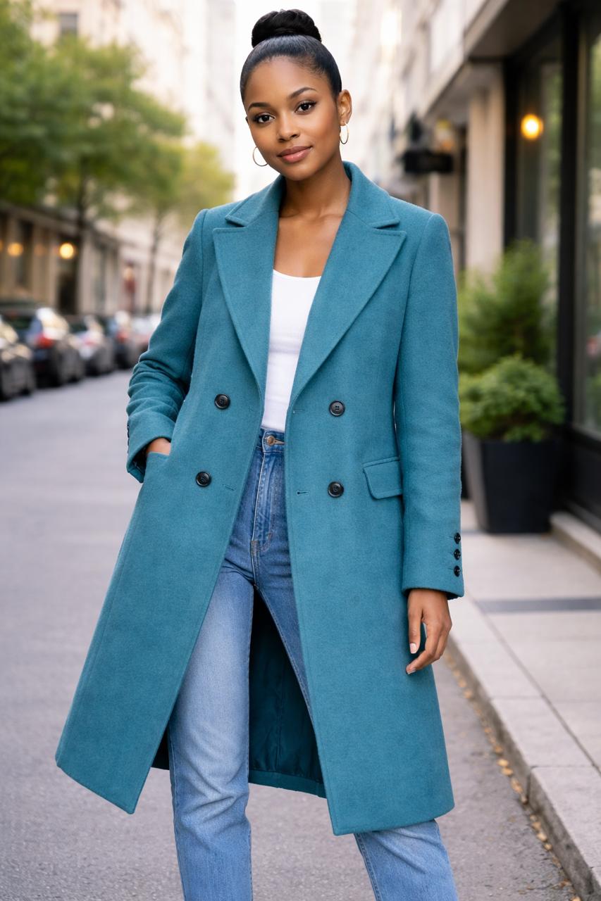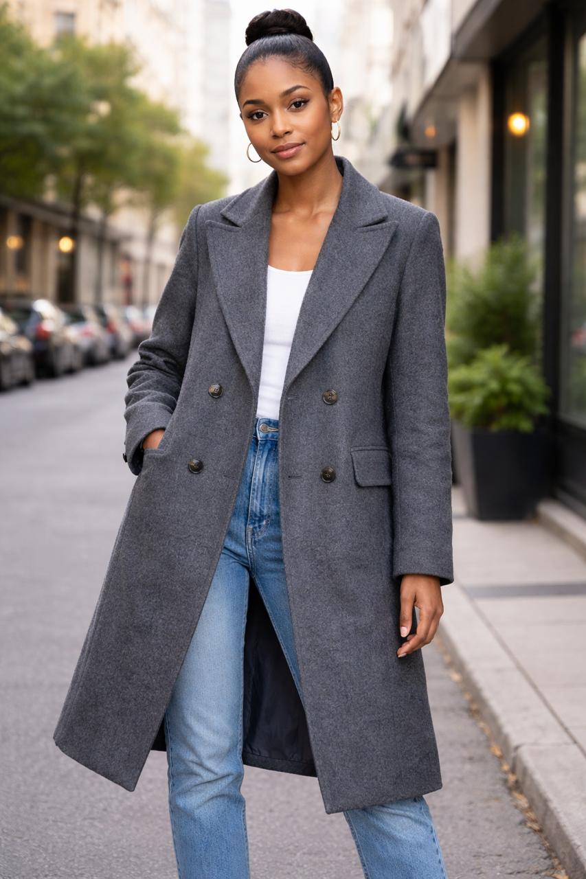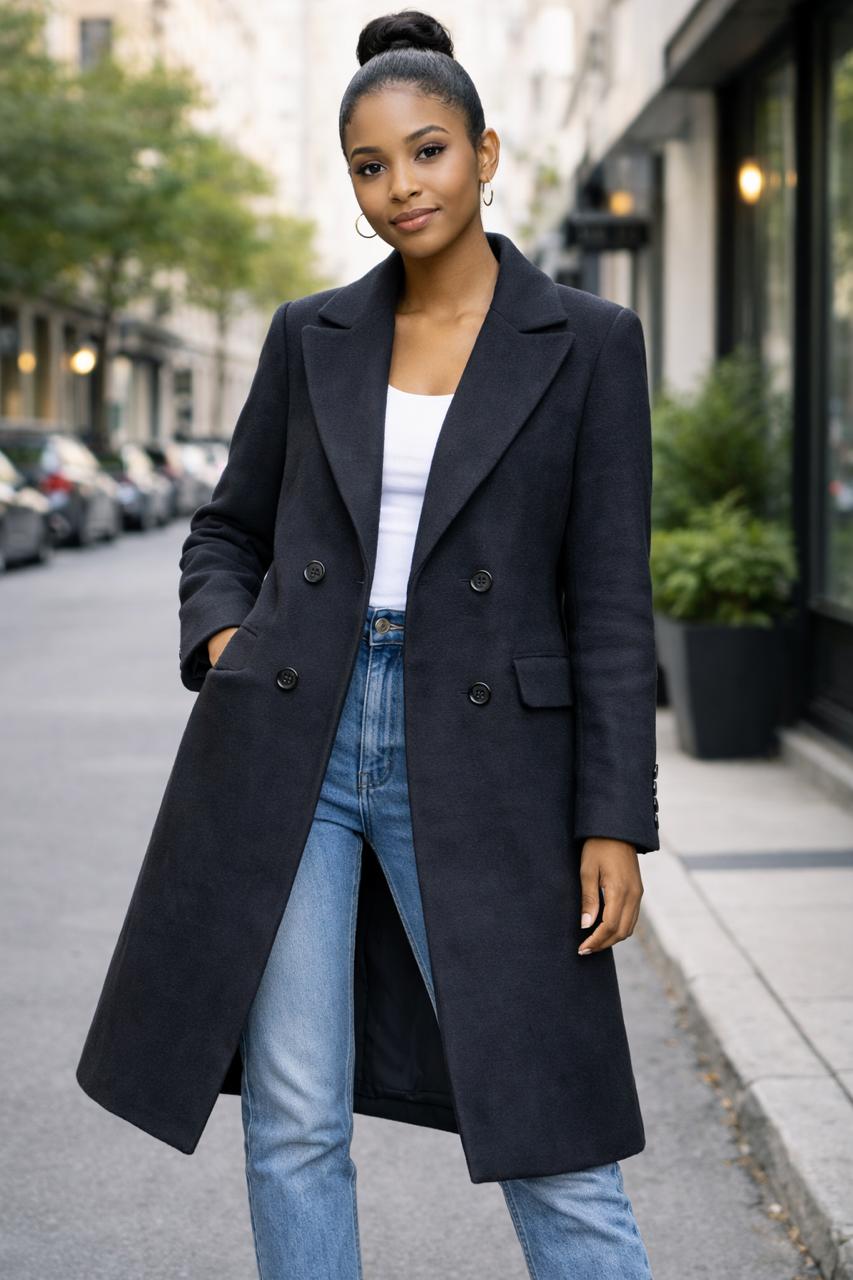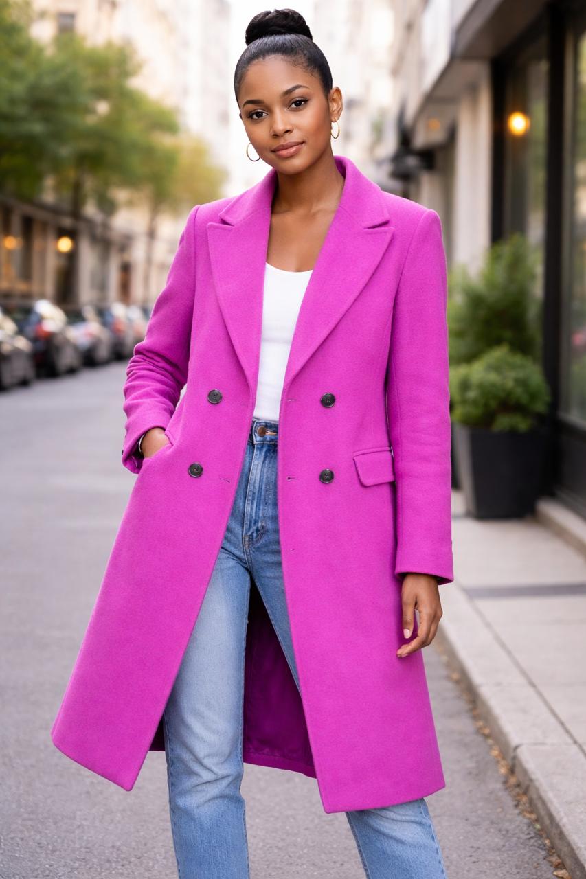 TAPADO LARGO DE PAÑO, ESTE MODELO CUENTA CON FORRERIA POR DENTRO, OJAL REDONDO, Y LOS BOLSILLOS HACIA DELANTE, TIENE COMO ADORNO BOTONES EN LAS MANGAS. ES UN MODELO QUE VA ENTALLADO AL CUERPO.